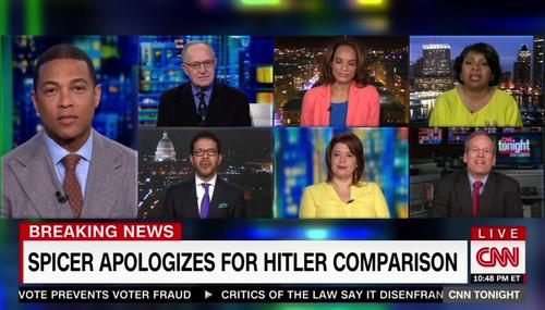On Thursday's CNN Tonight, host Don Lemon picked up on Democrats hyping a photograph of President Donald Trump meeting with the House Freedom Caucus because all members of the conservative group are white men. Lemon recalled a friend of his who cracked that "the only thing brown in that picture is the table," while CNN analysts Nia-Malika Henderson and David Gergen also weighed in to fret over…