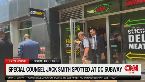 CNN loves special counsel Jack Smith so much they filmed and celebrated his lunch trip to Subway, which they invested with great meaning. "Turns out even Jack Smith can't resist a $5 footlong," gushed Dana Bash. She insisted the "imagery" was an important rebuttal to Trump. John King claimed it sent an anti-bullying message, Smith saying "I'm not going anywhere" with his sandwich.