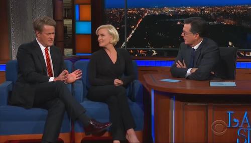 Morning Joe co-hosts Joe Scarborough and Mika Brzezinski went on Stephen Colbert’s Late Show, Thursday, to praise liberal candidates, bash Donald Trump and make wild predictions. Scarborough insisted that Trump won’t even run in 2020: “I don't think Donald Trump is going to run for reelection. He didn't want to be elected for president. He didn't think he was going to be elected.”