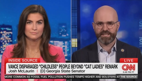 On Tuesday's The Source, CNN host Kaitlan Collins continued the media's hyping of J.D. Vance's "childless cat ladies" comments by having on the GOP vice presidential candidate's former roommate at Yale who is now a Democrat state legislator to trash him as coming from a "dark" and "creepy" place.