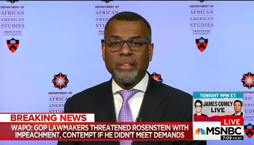 Princeton University professor and MSNBC contributor Eddie Glaude appeared to complain during Thursday’s Hardball that, along with new demands from Republican congressmen for documents from the Clinton e-mail investigation, the FBI Inspector General’s criminal referral concerning former FBI Deputy Director Andrew McCabe was part of an “assault” on Robert Mueller’s investigation.
