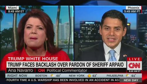 Monday morning’s New Day ended the 8am hour with a fiery back-and-forth exchange between host Chris Cuomo, CNN analyst Ana Navarro and Republican Senator from Arizona, Steve Montenegro, over President Trump’s pardoning of Arizona Sheriff Joe Arpaio this past weekend. The CNN host actually began by suggesting Trump “used” Hurricane Harvey as a “convenient” “cover” for his pardoning of the…