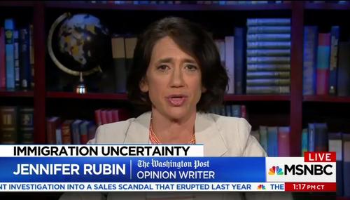 On Monday, Jennifer Rubin was at it again as the allegedly right-leaning Washington Post columnist and regular MSNBC guest was trashing fellow conservatives both on MSNBC and on her "Right Turn" blog at WashingtonPost.com. In a Monday morning blog post -- titled "Ending DACA Would Be Trump's Most Evil Act" -- Rubin excoriated the Republican party as the party of "white grievance" and as the "…