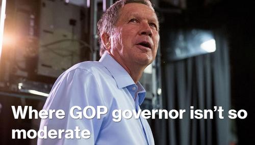 While MSNBC host Chris Matthews may be over the moon about John Kasich, seeing him as the most "moderate" and ergo acceptable choice of the Republican presidential primary field, The Rachel Maddow Show host and msnbc.com contributor Steve Benen took to the Lean Forward network's website today to denounce Kasich as a hard-core rightie.