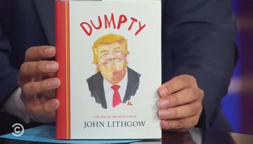 The Late Show host Stephen Colbert delighted Wednesday night as his guest, actor John Lithgow, read aloud some anti-Trump poetry from his upcoming book Dumpty: The Age of Trump in Verse. The book features a collection of “doggerel, satirical poems” written by Lithgow that serve as a “kind of chronicle of the last crazy two years.”