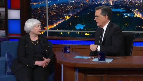Colbert's Yellen Softball: 'Could You Have Been a Better Cheerleader?'