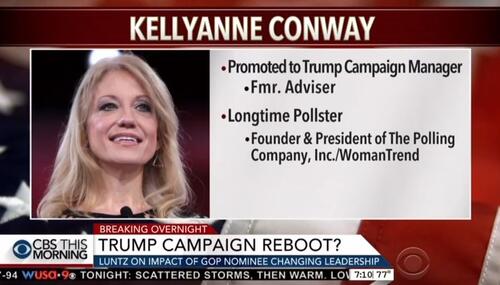 Kellyanne Conway on Wednesday became the first female to ever run a Republican presidential campaign. But the networks did not excitedly tout this as progress, instead they glossed over this point. On ABC’s Good Morning America, reporter Tom Llamas blandly explained, “Overnight, Donald Trump shaking up his campaign promoting pollster Kellyanne Conway to campaign manager.”