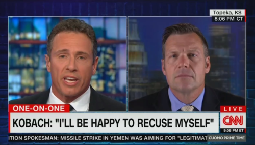 The race for the Republican nomination for Kansas governor is almost as close as close could be with just 91 votes separating frontrunner Kris Kobach, the current secretary of state, and incumbent governor Jeff Colyer. In an appearance on CNN’s Cuomo Prime Time, Kobach was badgered with questions by the show’s namesake that suggested he was possibly involved with manipulating the recount.