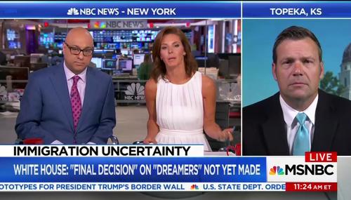 On Friday's MSNBC Live, hosts Stephanie Ruhle and Ali Velshi had a contentious debate with Kansas Secretary of State Kris Kobach over the issue of the Obama administration's DACA program that protects from deportation illegal immigrants who entered the country as children.