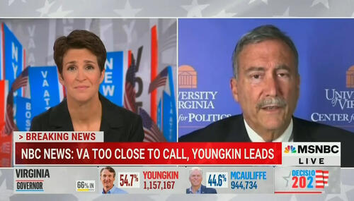 As the Virginia gubernatorial election returns were coming in Tuesday night showing Republican Glenn Youngkin on the verge of victory, RedState’s Nick Arama highlighted how “shell-shocked” liberal political analyst Larry Sabato appeared on MSNBC and mourned that “one of the people high up in the McAuliffe campaign called it what it was — a ‘bloodbath.’”