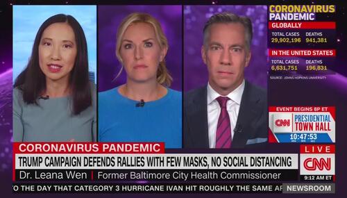 On CNN Newsroom, co-hosts Poppy Harlow and Jim Sciutto invited CNN medical analyst, and former Planned Parenthood president Leana Wen to explain why BLM protests are actually safer from coronavirus than Trump rallies.  (The science knows!)