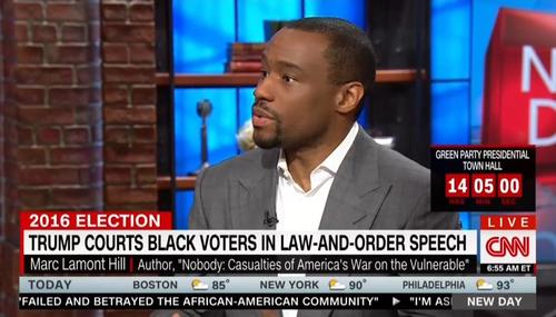 On Wednesday’s CNN New Day, Chris Cuomo brought on CNN commentator and host of BET News Marc Lamont Hill and former Secret Service agent and current candidate for congress in Florida Dan Bongino, to discuss Trump polling poorly with African-Americans. While Bongino argued that democrat run cities have failed black communities, Lamont Hill claimed that poverty and Democrat machines are connected…