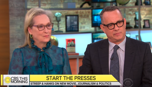 In a fawning interview with the stars of The Post, on Thursday’s NBC Today, co-anchor Savannah Guthrie gushed over Hollywood’s latest love letter to the liberal media: “The movie is getting great reviews. And for something that took place 45 years ago, it feels like it could have been ripped right out of a newspaper today. Very timely.”