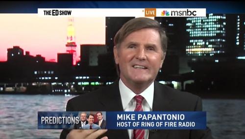 When his hyperbole exceeds even the broad parameters of absurdity embraced on the left. Case in point -- attorney and "Ring of Fire" radio show co-host Mike Papantonio's appearance on fellow libtalker Thom Hartmann's show on Wednesday. (audio clip after page break)