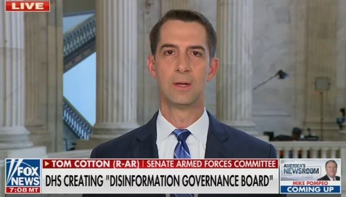 Sen. Tom Cotton (R-Ark.) says Department of Homeland Security (DHS) Secretary Alejandro Mayorkas’ new “Misinformation and Disinformation Governance Board” will “twist language to fit their own needs” – just as Democrat politicians are doing to advance their agenda – and that the DHS shouldn’t be getting into the censorship business.