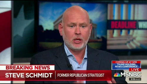 Appearing this afternoon on MSNBC's Deadline: White House program hosted by Nicolle Wallace -- his sidekick on the McCain presidential campaign -- Steve Schmidt broke out the tired liberal claim that Republicans somehow resemble the villains of 'The Handmaid's Tale.' The show has been described as portraying "a dystopian future  . . . wherein a totalitarian society subjects fertile women, called…