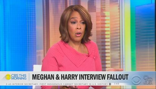The tangled web of liberal Democrat pals Oprah Winfrey and Gayle King took a new promotional turn on Tuesday as the CBS This Morning host used her status to spout PR for Prince Harry and Meghan Markle, deriding the “racial slant” of reporting and to declare that antagonistic coverage of the couple is “unfair, inaccurate and false.”