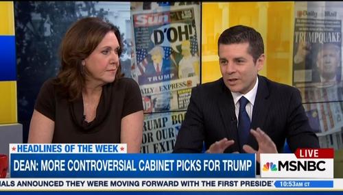 Appearing as a panel member on Sunday's AM Joy on MSNBC, liberal comedian and Daily Beast columnist Dean Obeidallah injected lame comedy into the show's final segment as he cracked that, in the week ahead, Donald Trump might pick David Duke as a Supreme Court justice or someone who "hates the environment" for EPA administrator.