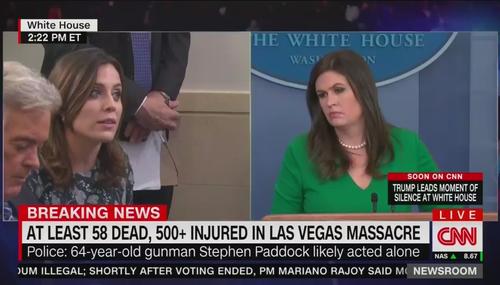 On Monday’s daily White House briefing, journalists went into overdrive pushing for Press Secretary Sarah Huckabee-Sanders to talk about gun control and what President Trump was planning on doing policy-wise with respect to Sunday night’s mass shooting in Las Vegas.