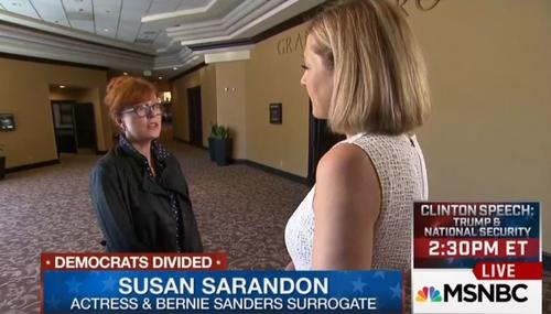 In an interview with NBC correspondent Chris Jansing aired during MSNBC’s 1 p.m. ET hour on Thursday, left-wing actress and fervent Bernie Sanders supporter Susan Sarandon called out the lack of media attention for Hillary Clinton’s ongoing e-mail scandal: “I don’t know anybody – nobody’s even talking about this indictment, what happens with that? Besides the trust issue of catching her in so…