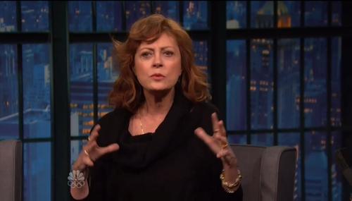 Last night Susan Sarandon, one of Hollywood's most outspoken leftist celebrities paid a visit to Late Night with Seth Meyers – whose host almost nightly bashes conservatives – so of course Sarandon’s liberal activism was the main topic of conversation. The actress worked in plugs for Bernie Sanders and the Huffington Post while bashing the “hate rhetoric” coming from some in the GOP, all in one…