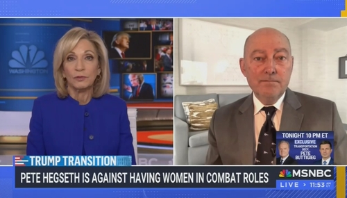 On her Wednesday show, MSNBC’s Andrea Mitchell spread misinformation by suggesting Defense Secretary nominee Pete Hegseth opposes the existence of female military pilots, thereby disrespecting those women who have suffered greatly in service to their country. On Thursday, instead of issuing a correction, Mitchell doubled down and repeated the claim.