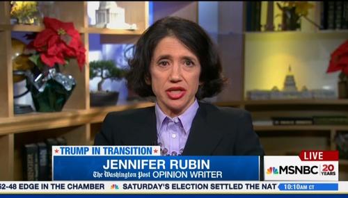 Appearing as a guest on Sunday's AM Joy on MSNBC to discuss ExxonMobil CEO Rex Tillerson's selection to be Donald Trump's Secretary of State, allegedly right-leaning Washington Post columnist Jennifer Rubin derided the cabinet picks as "ignoramuses, billionaires, and a few generals," and fretted that it was "pretty frightful stuff."