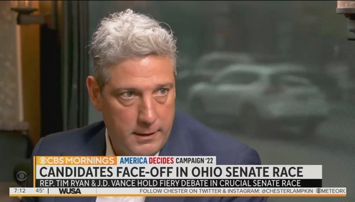 The midterms segment on Tuesday’s CBS Mornings descended into what’s almost certainly a tall tale as the co-host Tony Dokoupil and chief election and campaign correspondent Robert Costa attempted to tell viewers that liberal Congressman (and frequent guest on the long-since axed Ed Show) Tim Ryan has a real shot to triumph in the Buckeye State over Republican J.D. Vance.