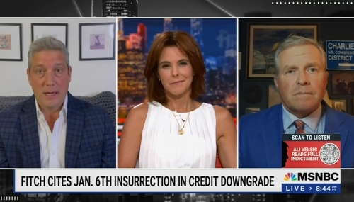 During a discussion on former President Donald Trump’s latest indictment related to January 6, MSNBC’s Stephanie Ruhle went on a bit of a digression on Wednesday’s The 11th Hour to discuss Fitch downgrading the U.S.’s credit rating, which according to her was caused by “was the chaos created by the GOP” including January 6. Of course, Fitch’s own explanation was a little bit more…