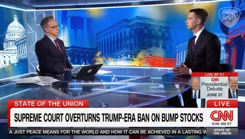 On CNN State of the Union, host (and presidential debate co-moderator) Jake Tapper tried to coax Sen. Tom Cotton (R-AR) into supporting a legislative ban on bump stocks in the wake of the Supreme Court’s recent ruling repealing the ATF’s administrative ban. Cotton called out the left’s double standard in enforcing the law, and on the Supreme Court.