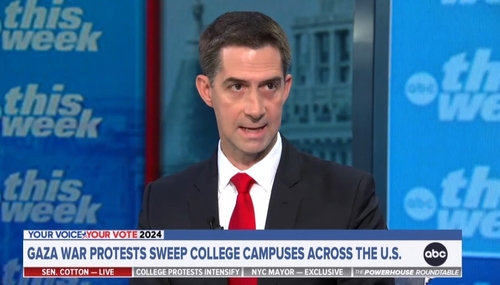 During a wide-ranging interview on ABC’s This Week, Sen, Tom Cotton (R-AR) took a blowtorch to the antisemitic protesters on college campuses, brutally mocked them as establishing “little Gazas”, and schooled host Jon Karl when he tried to twist mockery of the encampments into mockery of Gaza itself.