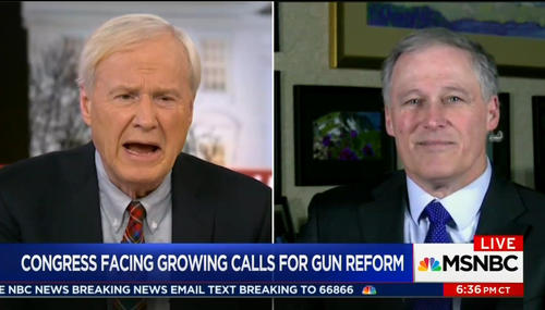 On Tuesday’s Hardball, lefty MSNBC pundit Chris Matthews refused to correct Democratic Governor Jay Inslee (Wash.) on his absurd claim that the National Rifle Association (NRA) wants first graders to be armed with guns. Not only that, but the host debased the gun rights group's millions of members and civil discourse by comparing anyone who defies the NRA to assassinated leaders Anwar Sadat of…