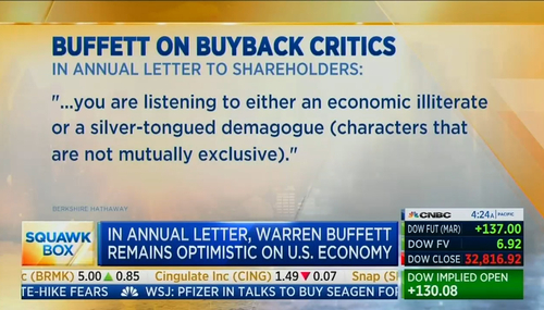 This week, the liberal news networks said absolutely nothing about billionaire Warren Buffett’s barely-veiled slam of President Biden and other liberals for their newest class warfare gambit: demonizing corporations that buy back their stock. That’s a far cry from 2011 and 2012, when those same networks helped juice then-President Obama’s re-election campaign by trumpeting Buffett’s call for…
