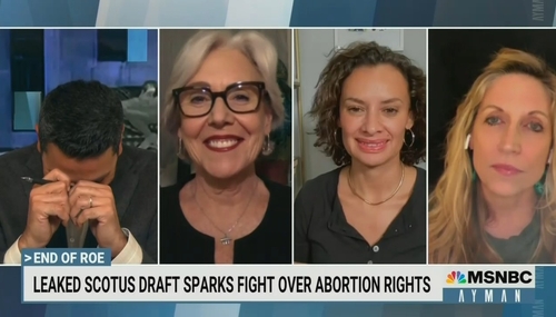 On Sunday night, as Mother’s Day wound to a close, MSNBC’s Ayman show put on a panel including liberal comedian Laurie Kilmartin. Host Ayman Mohyeldin was highly amused when Kilmartin suggested she would “make sweet love” to the hero who leaked the Alito draft opinion on abortion to Politico, and if they were a Republican and she got pregnant, she would “joyfully abort our fetus.”