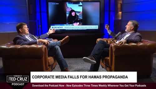 On Monday’s edition of Senator Ted Cruz’s (R-TX) podcast The Verdict, Cruz and co-host Ben Ferguson had a lengthy segment praising the work of NewsBusters and associate editor Nick Fondacaro for exposing the “big three” networks of ABC, CBS, NBC for using dubious footage from a known pro-Hamas crisis actor named Saleh Aljafarawi.