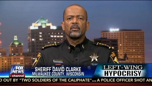 On Tuesday night’s Hannity, Milwaukee County Sheriff David Clarke slammed the ”liberal mainstream media” for ”propagating this false narrative about how law enforcement treats black males and people in the black community” in places like Baltimore and Ferguson. He accused the media of ginning up “race politics. They support a lot of the leftist agenda when it comes to this stuff, identity…