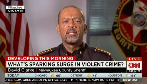 On Tuesday's New Day, CNN gave attention to recent surges in violent crime in American cities, including Milwaukee, as it brought aboard Milwaukee County Sheriff David Clarke as a guest to give his take on why the spike has occurred.