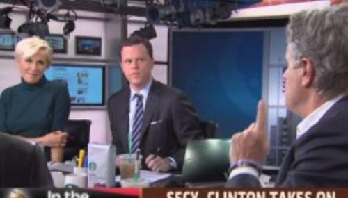 All three network evening newscasts on Monday found time to tout Secretary of State Hillary Clinton's return to work after hospitalization for a blood clot, "clearly enjoying a prank gift" from her staff and being greeted by a "standing ovation."