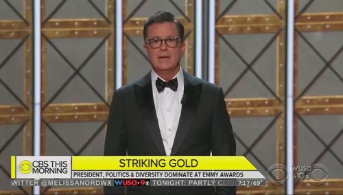 The 69th Primetime Emmy Awards hosted by liberal Late Show host Stephen Colbert aired Sunday, September 17th on CBS. Colbert’s displeasure with President Trump’s November victory was immediately apparent as his full seventeen-minute show opening was chock-full of slings and arrows flung at him and the anti-Trump hate-fest continued all night with several actors even addressing the president…