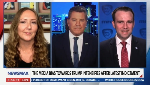 NewsBusters managing editor Curtis Houck hopped on Newsmax Monday night during Eric Bolling: The Balance alongside New York Post columnist and 2023 MRC Bulldog Award winner Karol Markowicz to sound off on the ebullient liberal media’s coverage of the second Trump indictment and their continued penchant for hurling venom at Trump supporters.