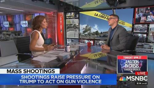 In the aftermath of the mass shootings in El Paso, Texas, and Dayton, Ohio, MSNBC Live host Stephanie Ruhle invited author Igor Volsky on her Monday show to advocate for gun control, condemn the National Rifle Association, and spread some fake news in the process.
