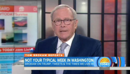 In a report for Friday’s NBC Today, special correspondent Tom Brokaw bemoaned the “turmoil” and “chaos” in Washington following Republican Senators Jeff Flake and Bob Corker blasting President Trump. The former Nightly News anchor seized the chance to compare the current contentiousness to the Monica Lewinsky, Iran-Contra, and Watergate scandals that threatened past presidencies.