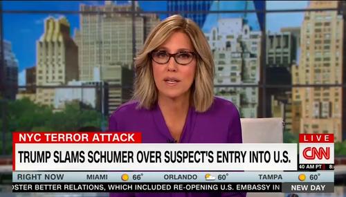On Wednesday's New Day, CNN host Alisyn Camerota repeatedly fretted over President Donald Trump attacking Senate Democratic Leader Chuck Schumer for supporting the 1990 immigration law that helped Uzbekistan-born terrorist Sayfullo Saipov to get into the United States.