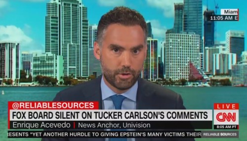 The liberal media’s narrative that President Trump was somehow responsible for the mass shooting in El Paso last weekend has apparently expanded to also include Fox News. According to Univision anchor Enrique Acevedo, during an appearance on CNN’s so-called “Reliable Sources”, Trump and Fox News host Tucker Carlson were responsible for rhetoric “transcending into violence, into bullets”, and into…