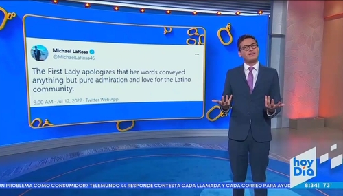 Four days after the first lady of the United States publicly compared Hispanics to breakfast tacos, anchor Nacho Lozano, from Telemundo, was still vexed enough about the 'awful analogy' to call Dr. Jill *in Mexican slang*: a BS artist -- yo de lengua, me como un taco.
