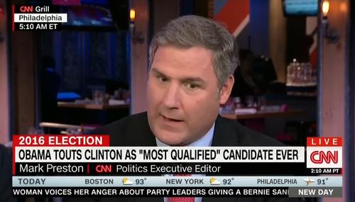 Appearing as a panel member on Thursday's New Day, CNN Politics Executive Director Mark Preston pronounced that President Barack Obama was "absolutely right" in proclaiming that Hillary Clinton is "more qualified" than either he or Bill Clinton were when they were elected President, as he went even further and declared that "if you are only going to go by the resume and what they have done their…