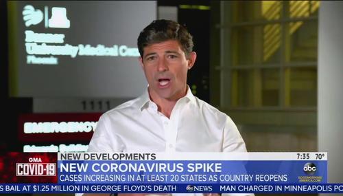 Just like you would expect, the media who cheered on massive protests and riots across the country for George Floyd and Black Lives Matter these past two weeks is now blaming a spike in coronavirus cases on businesses reopening with social distancing measures. On ABC’s Good Morning America Tuesday, correspondent Matt Gutman left out any role protests and riots had on a surge in COVID…