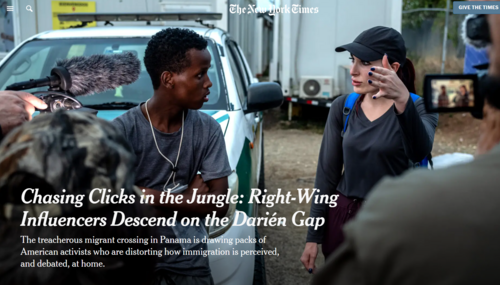 New York Times reporter Ken Bensinger covers “right wing media and national campaigns,” and the hostility and clear revulsion he felt toward right-wing figures, and credulity toward the story of every single migrant he encountered, is evident in every word of “How the Right Shapes the Immigration Debate from Panama,” his long expose that led Thursday’s paper.