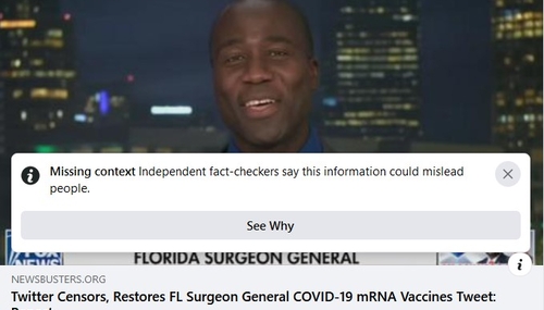 Facebook is ironically censoring a blog post by an MRC staffer that calls out another platform’s suppression of a study questioning the safety of COVID-19 mRNA vaccines.
