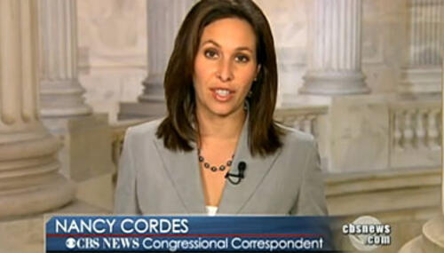 On Thursday's CBS Evening News, congressional correspondent Nancy Cordes implied that the House Homeland Security Committee hearing on the radicalization of American Muslims was simply a political show put on by committee chairman Peter King: "Ignoring calls from Democrats to cancel his hearing...King embarked on the inquiry in a room newly decorated with fiery images from 9/11."